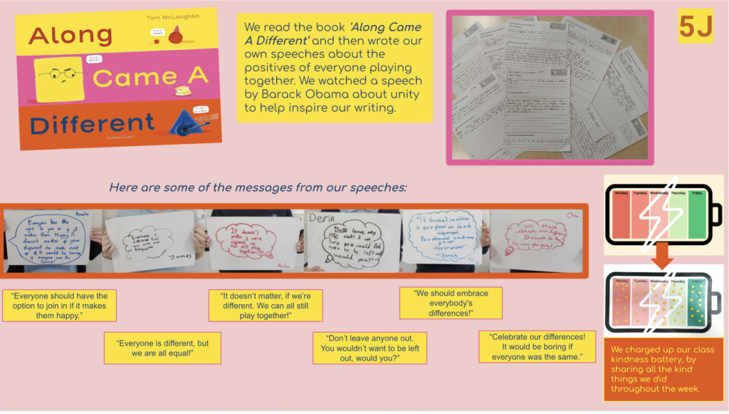 For anti-bullying week the children had opportunities this week to think about the reasons we should be kind to each other and what we should do if something is upsetting us in school. By ensuring that we have a respectful and open dialogue with each other we can hope to create the next generation of tolerant, kind and generous individuals. A big thank you to Ms Suleyman for setting up all the events this week around both of these initiatives. Please click here to see our Learning Collection slides.