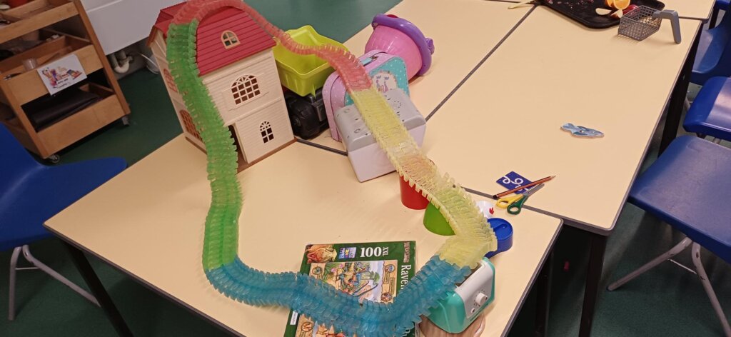 Some children worked brilliantly together and challenged themselves to build a marble run using the colourful tracks. They worked brilliantly together, took turns well and communicated their ideas to each other.