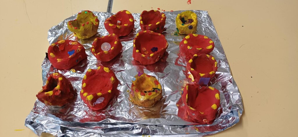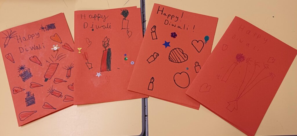 The start of the new term at after school club has been fun and productive. The children made some beautiful Diwas for Divali and some colourful cards. We learned all about Divali from Mrs Maholtra and she led our activity, which was great!