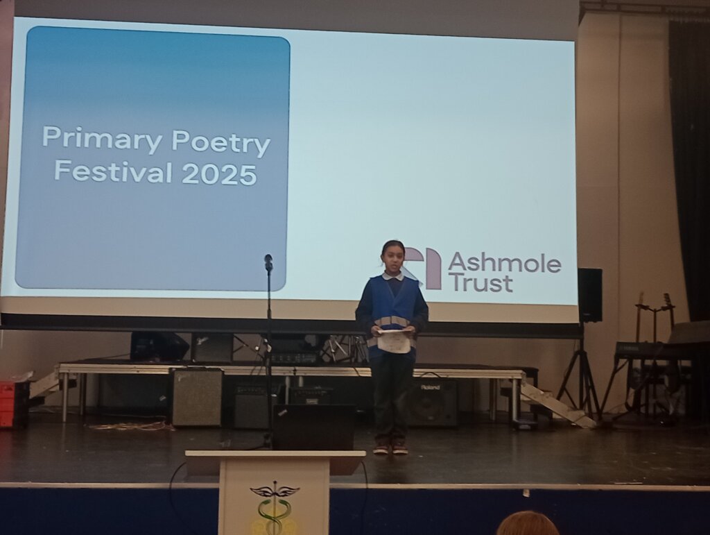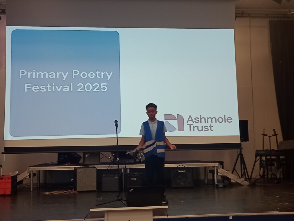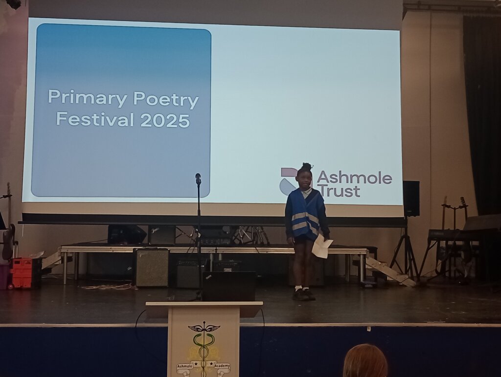 Wednesday’s Poetry Festival for the Primary Schools within the trust was a fantastic conclusion to our own poetry celebration. Some of our KS2 pupils took part and they enjoyed working with Year 8 pupils from the Academy to develop their oracy skills with some warm-up speaking activities. When sharing their poems, our Osidge pupils performed brilliantly, with the majority reading their own, creative compositions. Ariadni (Y5) was our school’s runner-up, and Mohamed (Y6) was our winner, and overall winner of the whole event! Well done to all who took part, and thank you to Miss Savva who worked with staff from the Ashmole Trust to organise the session, building on our school’s good work developing pupil confidence and providing opportunities to speak publicly