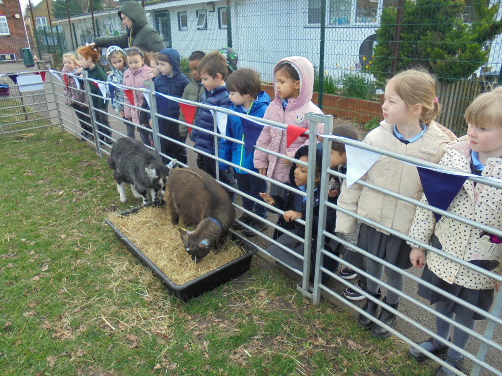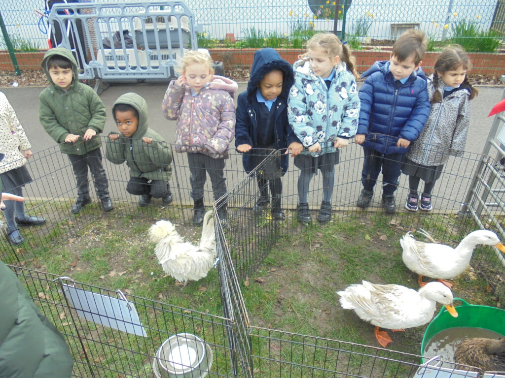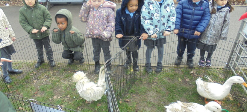 Reception had an exciting visit from The Arc Farm on Monday. We turned our school field into a mini farmyard for the day. This real-life experience has provided a brilliant launch pad for our new topic ‘Are Eggs Alive?’ The children’s excitement following the visit engaged them in lots of fantastic learning opportunities this week including painting images of the animals they saw and using collage to create a habitat for the animals to live in. The children wrote a recount of their trip and created a map of the school and farm animals around the field.