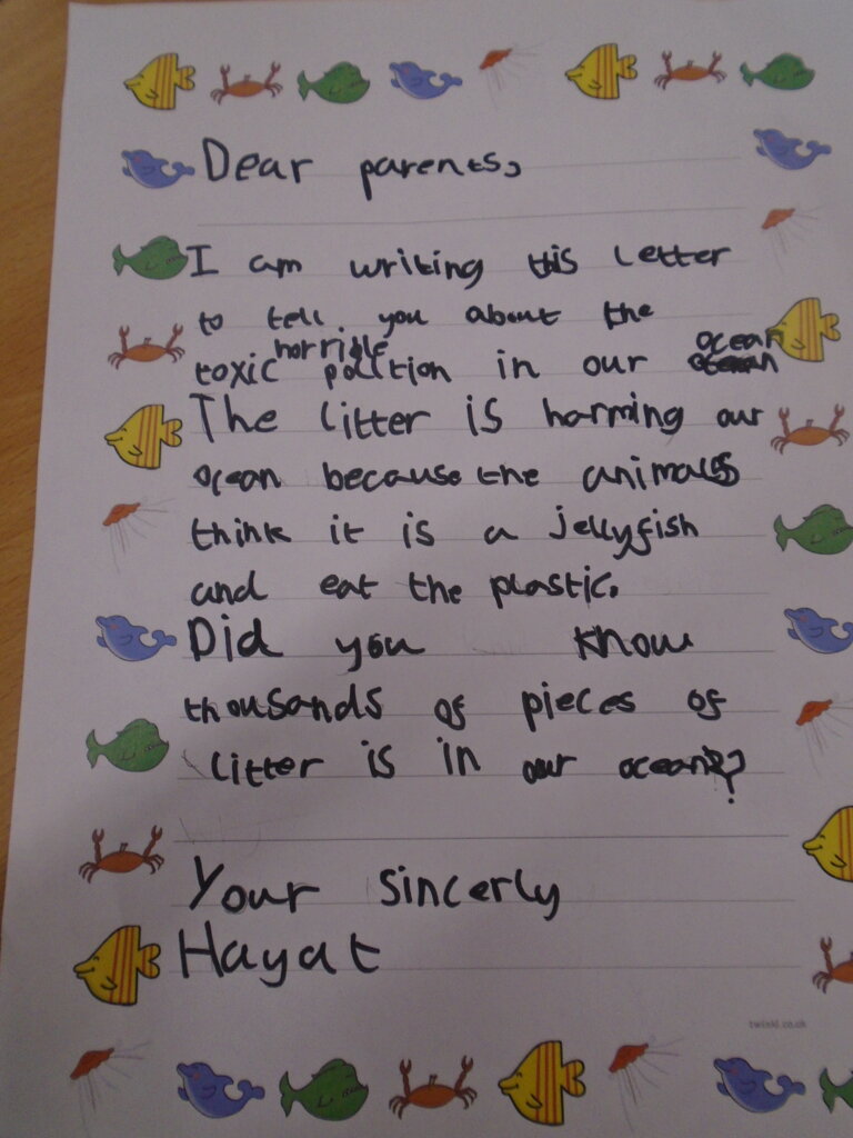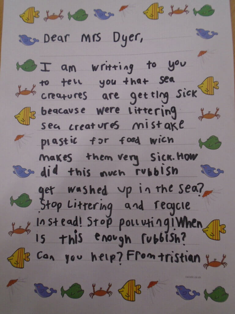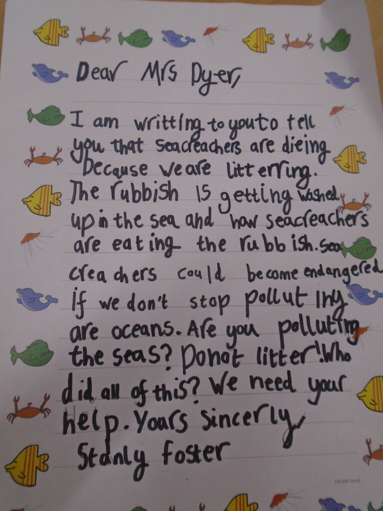 They wrote thoughtful letters to Mrs Dyer and their parents, asking for help to ‘Save Our Seas’. In their letters, they shared ideas on how everyone can make a difference—by reducing plastic waste, recycling more, and being careful not to litter. Well done, Year Two!