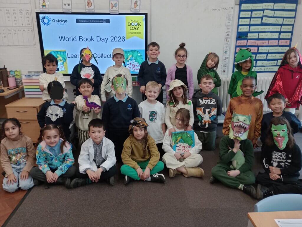 partnership. Throughout the week, our pupils wrote pieces inspired by our shared school text, with writing ranging from creative fiction to non chronological reports linked to science and geography. Wednesday’s dress-up saw Osidge School full of dinosaurs, palaeontologists and museum curators. My friend, Rory the Dinosaur, had a lovely time visiting all the classes! Thank you to Miss Savva for organising the activities and liaising with Ashmole Primary School for the shared experiences focused on reading for pleasure. Please click here to view our learning collection slides.