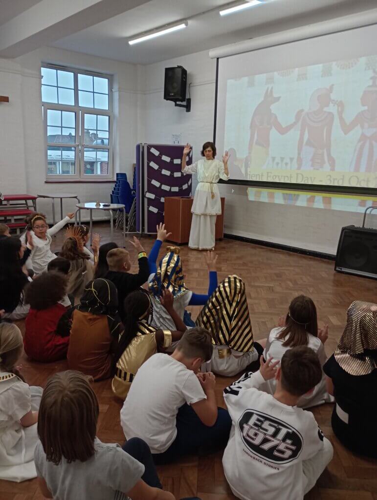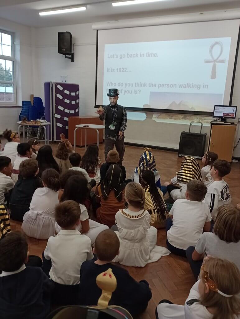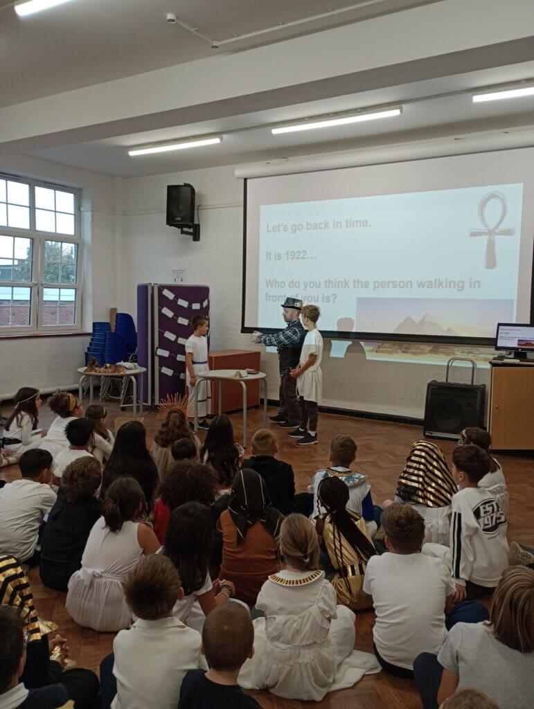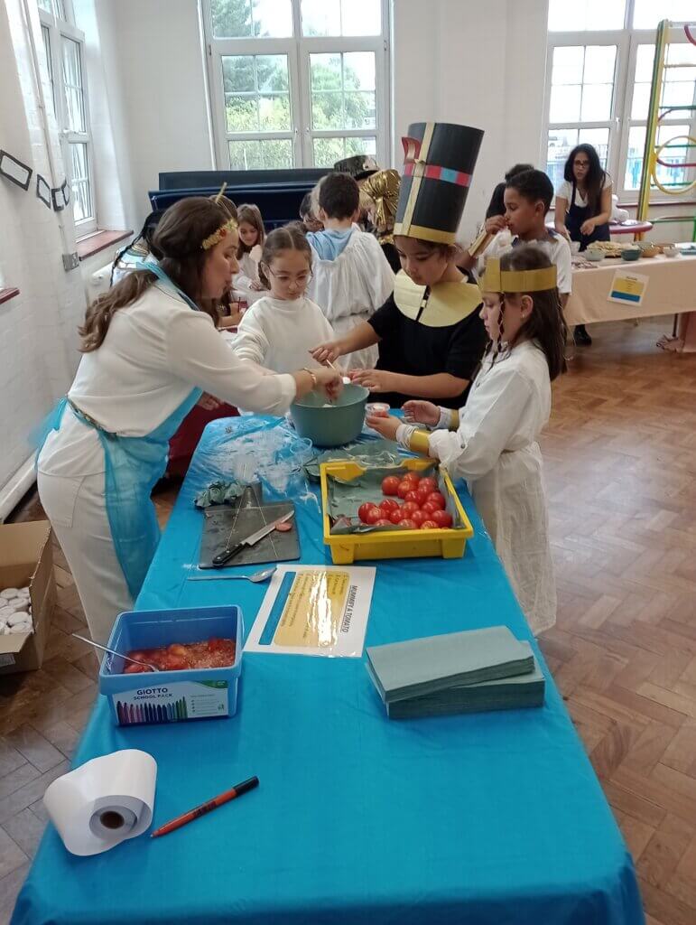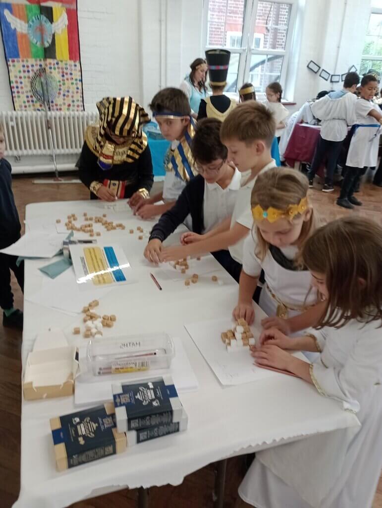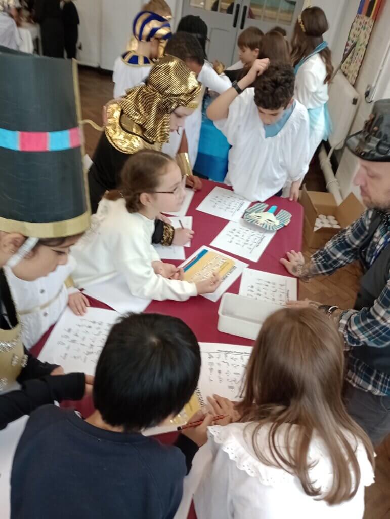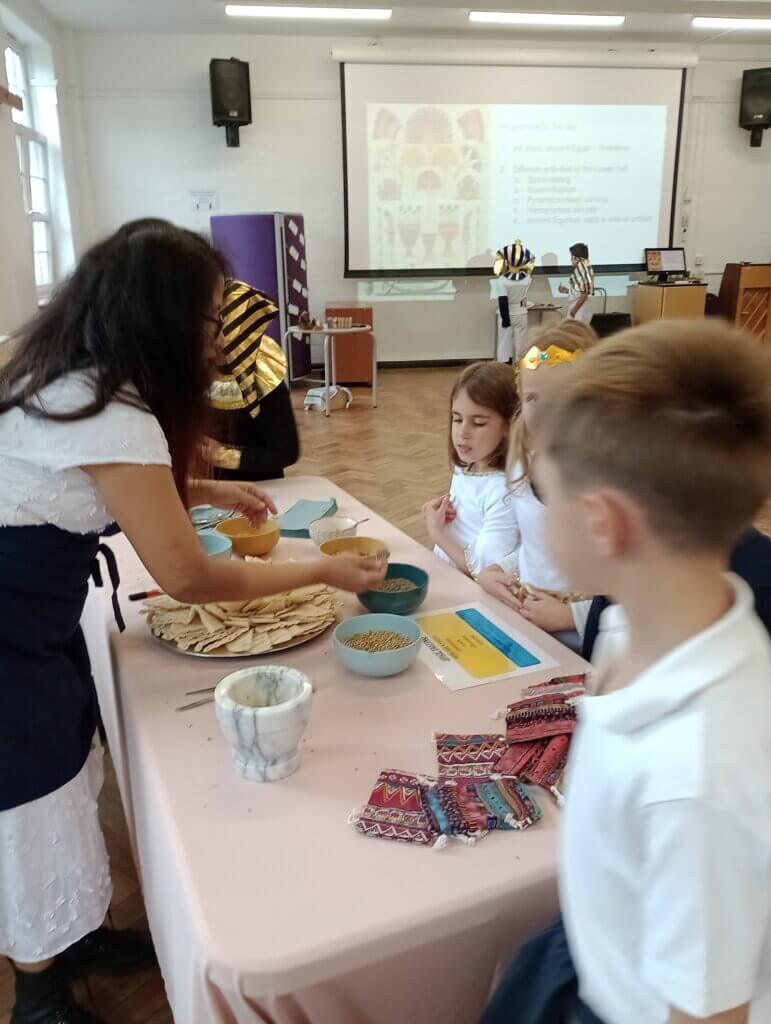 We had a great day as Ancient Egyptians! We had a surprise visit from Mr Carter,learnt how to grind spices using pestle and mortar,mummified a tomato, solved Maths pyramid problems, decoded a message written in hieroglyphics and learnt how weave. All in all, very busy but rewarding day!