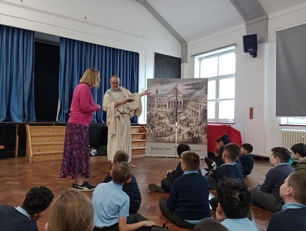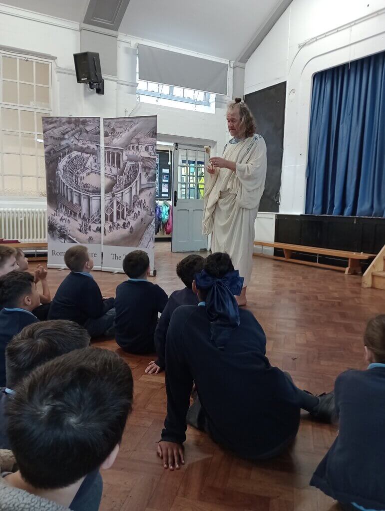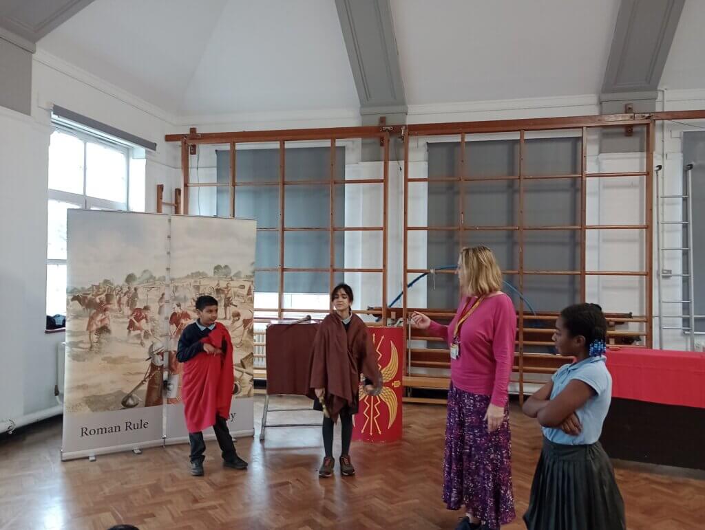 Our visitors talked us through some key information about the Ancient Roman civilisation – military, religious, entertainment, law. With artefacts to handle and costumes to see and try, the workshop was very engaging and a great start to our topic about the Ancient Romans this term.